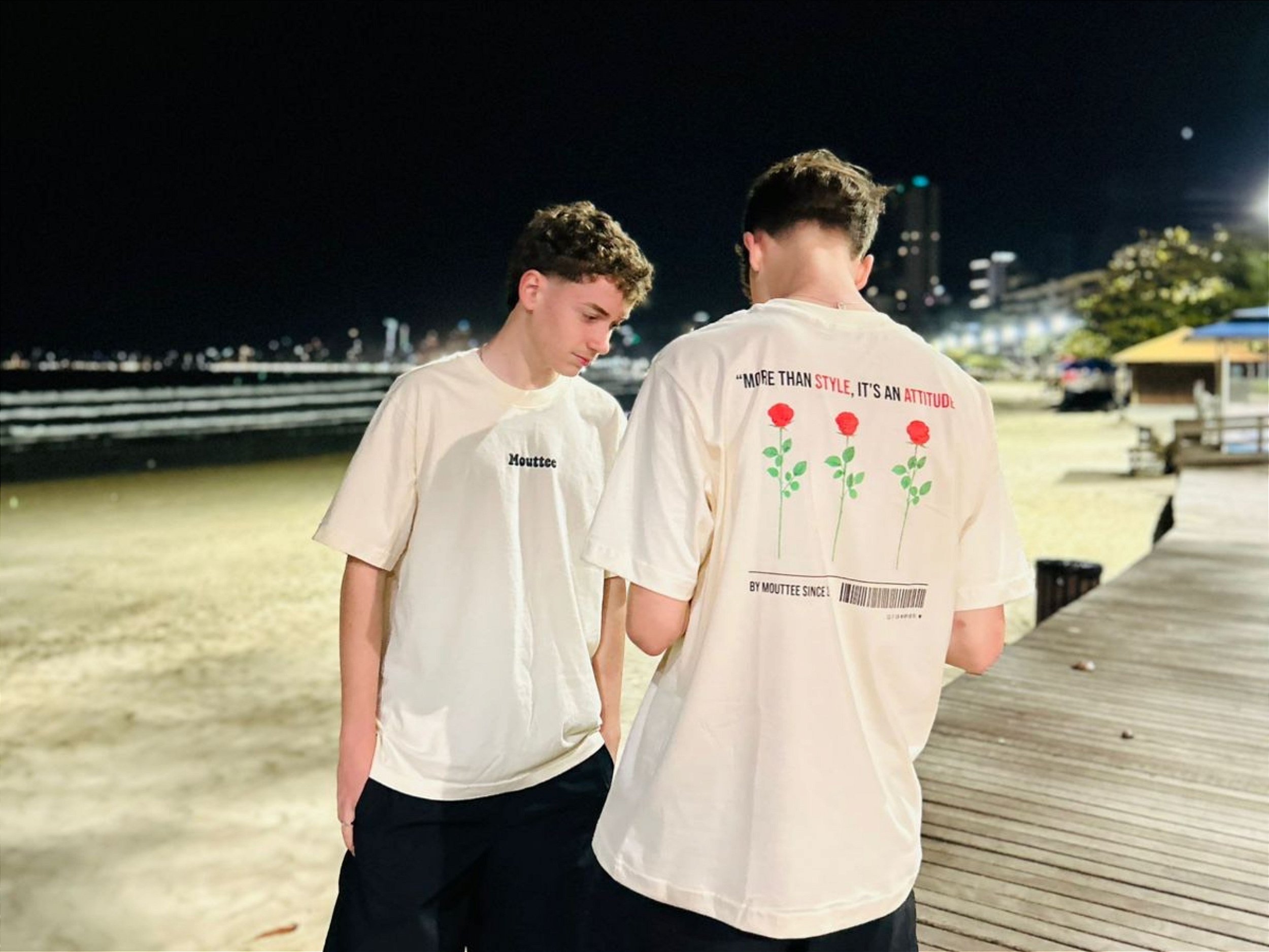 A camiseta Mouttee traz uma estampa minimalista e marcante com três rosas vermelhas, acompanhadas da frase “More than style, it’s an attitude”, reforçando identidade, personalidade e presença.